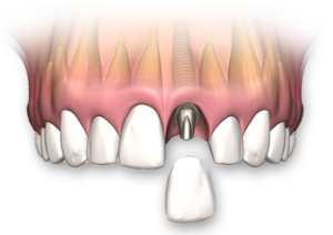 A titanium post is placed in to the jaw bone to replace the roots of the missing tooth. Once the implant has integrated into the bone, which can take a few months, a custom-made crown is screwed directly onto it. During the integration period, a temporary tooth can be fitted, so the post is never visible.